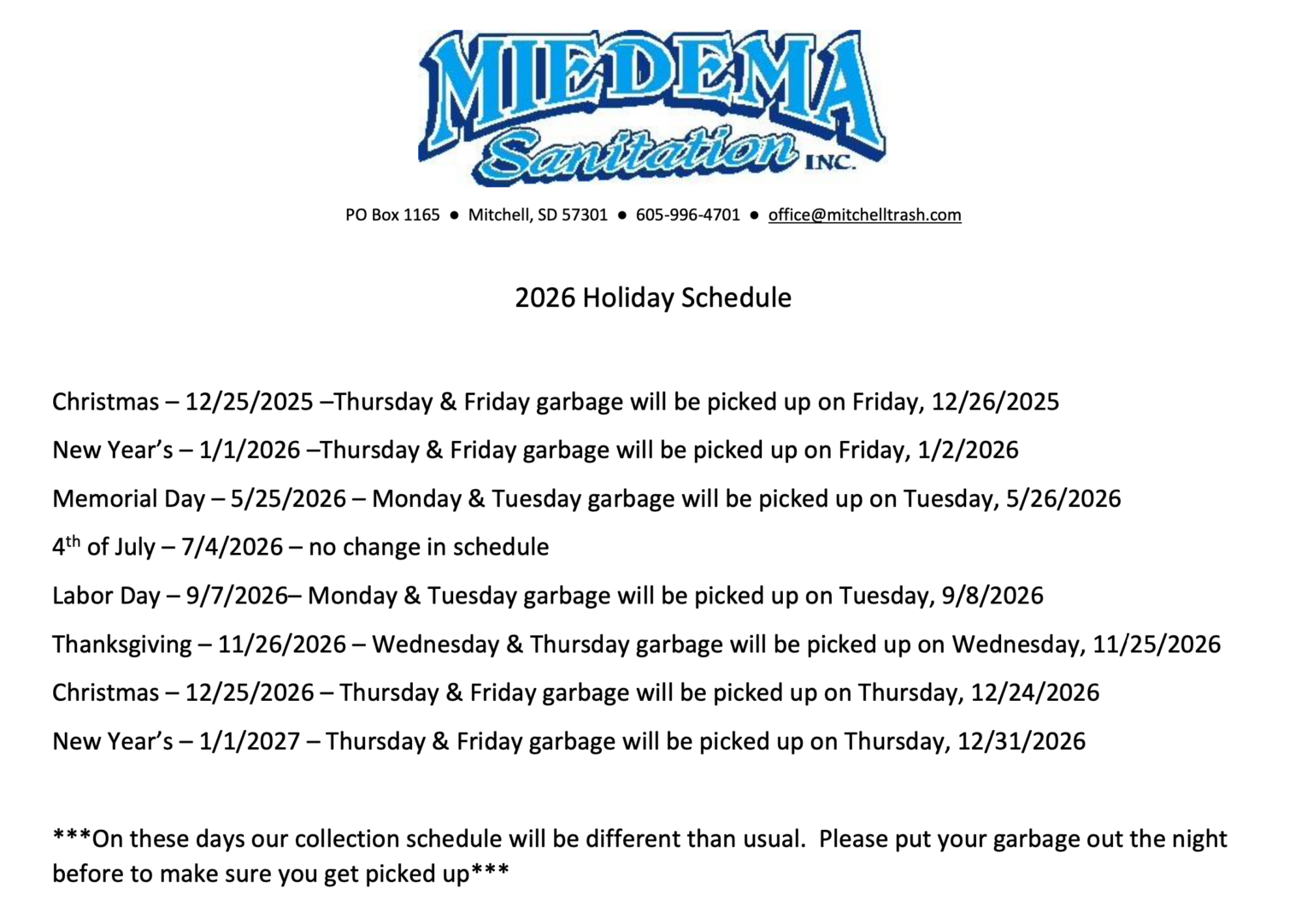 HAPPY HOLIDAYS FROM MIEDEMA SANITATION!